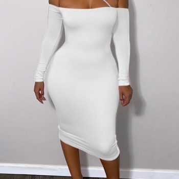 victoria’s vogue Cotton Off Shoulder Midi Woman’s Dresses Long Sleeve Elegant Bodycon Sexy Casual Solid Dresses For Women’s Dress 2021