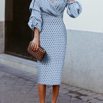 victoria’s vogue Elegant Polka Dot Women Long Dress Autumn 2021 New Fashion Lantern Sleeves Bodycon Dresses V-Neck Slim Casual Female Vestidos