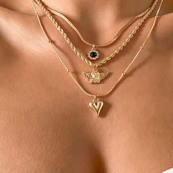 victoria’s vogue Fashion Gold Silver Color Bead Twist Chain Heart-shaped Angel Crystal Pendant Necklace For Women Multilevel Boho Girl Jewelry