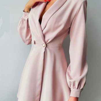 victoria’s vogue Office v-neck long sleeves pink A-line mini dress women autumn Elegant buttons solid dresses Female shawl collar vestido