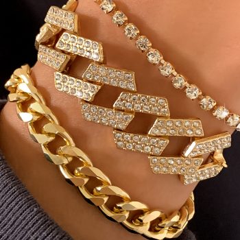 victoria’s vogue Men Hip Hop Full Iced Out Rhinestones Miami Curb Cuban Bracelets Bangles Crystal Chain Adjustable Bracelets Jewelry