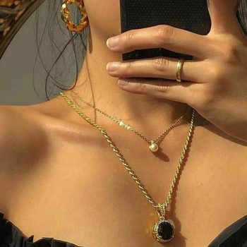 victoria’s vogue Fashion Multilevel Geometric Gold Alloy Rope Chain Artificial Pearl Black Crystal Pendant Necklace For Women Female Jewelry