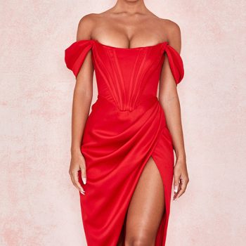 victoria’s vogue Strapless Off-shoulder Dress Women Slash Neck Side Split Sling Dresses Ladies 2022 Summer New Sexy Dress Vestidos