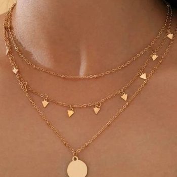 victoria’s vogue New Gold Fashion Simple Chain TMultilevel Necklaces For Women Necklace Riangle Round Pendant Female Jewelry Gift Wholesale