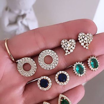 victoria’s vogue 2021 Blue Green Crystal Water Drop Leaves Flower Geometry Earring Set For Women Fashion New Vintage Earrings Jewelry Gift