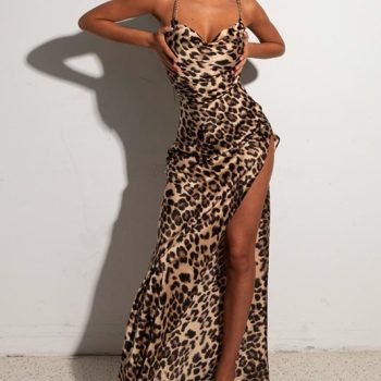 victoria’s vogue Spaghetti Strap Leopard Print Maxi Dress For Women 2022 Summer Sleeveless Backless Split Long Elegant Dress Vestidostor
