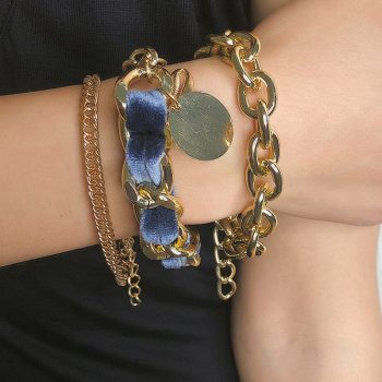 victoria’s vogue 2022 Retro Geometric Multilevel Glamour Fashion Jewelrys For Women Gold Thick Chain Shell Velvet Bracelet Set Jewelry