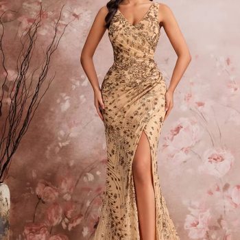 Victoria’s Vogue Elegant Slit Evening Dress 2025 Women Long Mermaid Formal Sequrins Sexy V-neck Caicktail Wedding Party Prom Dresses