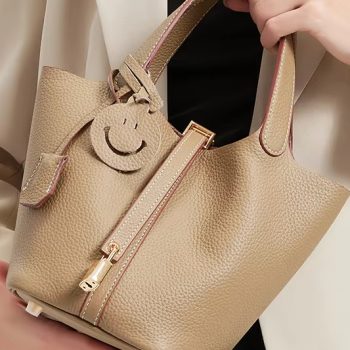 Victoria’s Vogue Autumn and winter Ladies’ Genuine Leather Bucket Handbag luxury designer handbags, top-grain leather commuting crossbody bag
