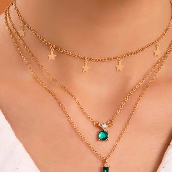 Victoria Vogue Simple Luxury Green Crystal Stone Layered Pendant Necklace for Women Star Alloy Metal Ajustable Jewelry Collar