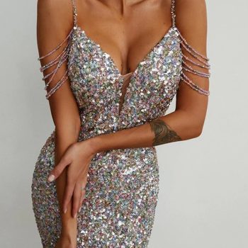Victoria Vogue One Shoulder Cut Out Sequins Bodycon Dress Elegant Dress Sexy Pink Cocktail Dress Summer Christmas Party Dress