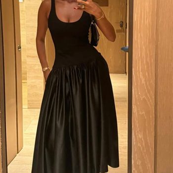 Victoria Vogue Women Elegant Black Sleeveless Patchwork Dress Fashion Spaghetti Strap Fit And Flare Long Robe Female Banquet Party Vestidos