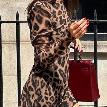 Victoria Vogue Women’s Sexy Leopard Print Slim Mini Dress Vintage O-neck Long Sleeve Chiffon Vestidos Elegant Chic Female High Street Robe