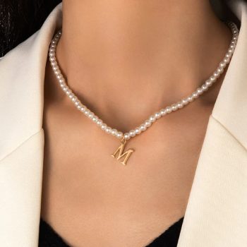Victoria vogue Elegant Pearl Stone Letter M Pendant Neckalce Classical Handmade Clavicle Chain Choker Party Jewelry Collar
