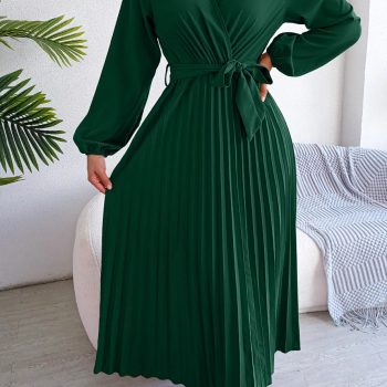 Victoria Vogue Women Spring Summer Cross Solid Color V Neck Large Hem Pleated Long Dress For Fashion