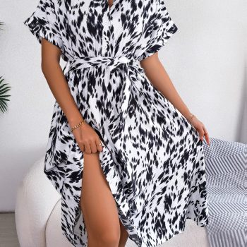 Victoria Vogue 2023 New Women Summer Casual Loose Leopard Lace Up Shirt Dress For Ladies Fashion All Match Chic Dresses