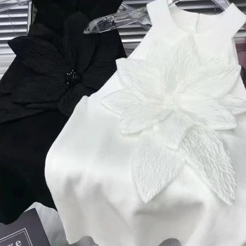 Victoria’s Vogue Knitted Sleeveless T Shirt for Women Big Flowers Stitch Sexy Ropa De Mujer Y2K Fashion Short Tank Tops camisetas Tops Tees