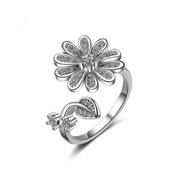 Victoria’s Vogue New Fashion Korean Style Exquisite Flower 925 Sterling Silver Jewelry Personality Leaf Crystal Temperament Opening Rings