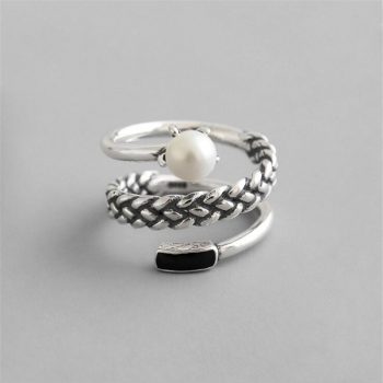 Victoria’s Vogue European Style New Women Snake Pattern 925 Sterling Silver Jewelry Retro Personality Pearl Fashion Opening Rings