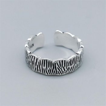 Victoria’s Vogue New Creative European Style Thai Silver Forest Bark Pattern 925 Sterling Silver Jewelry Striped Wavy Lace Opening Rings