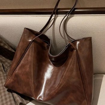 Victoria’s Vogue PU Soft Leather Shoulder Bags Solid Color Retro Design Handbag High Capacity Commuter Tote Bags Korea Style Stylish Shopping Bag