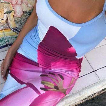 Victoria’s Vogue fall Colour Printed Spaghetti Hot Backless Maxi Dress Women Fashion Slim Elegant Contrast Patchwork Halter Dresses Autumn Long Dress