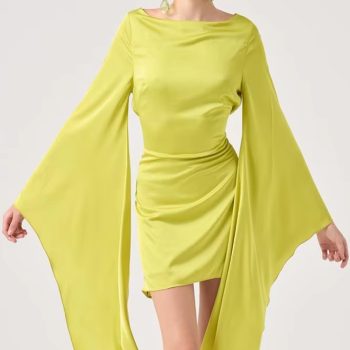 Victoria’s Vogue Satin Backless Bodycon Mini Dress Women Autumn Solid O Neck Irregular Long Sleeve Slim Short Dresses Elegant Partywear