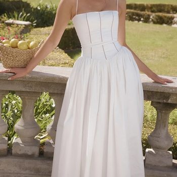 Victoria’s vogue Elegant White Sundress Spaghetti Strap Backless Midi Dress For Women Fashion Sleeveless A-line Loose Long Dress New