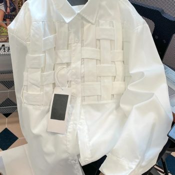 Victoria’s Vogue 2023 Spring Women White Blouses Shirts Turn-down Collar Full Solid Hollow Out Girls Blouse Tops Simple Preppy Style Small Fresh