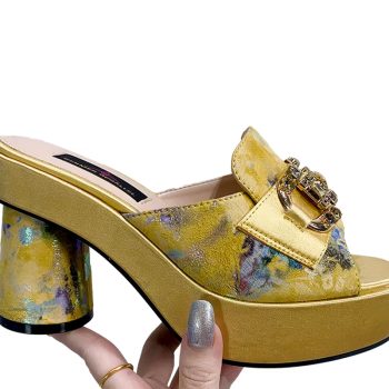 Victoria’s Vouge Wedding Party High Heels Bag Set Bohemian Embroidery Pattern Original Design Women Shoes Bright Sparkling Gemstone Diamond Mules