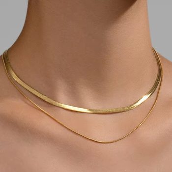 Victoria’s Vogue Classic Unisex Flat Snake Chain Choker Necklace For Women Stainless Steel Herringbone Gold Silver Color Fashion Jewelry Gift