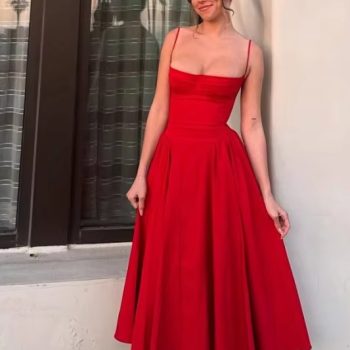 Victoria’s Vogue Suninheart Spaghetti Strap Summer Party Dresses 2025 New Arrivals Fit and Flare Elegant Midi Dress Red Night Date Dress