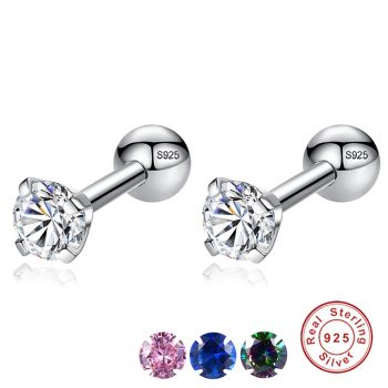 Victoriasvogue 925 Sterling Silver Simple Stud Earrings Crystal Cubic Zirconia Round Ball Geometric Earrings Women Wedding Jewelry