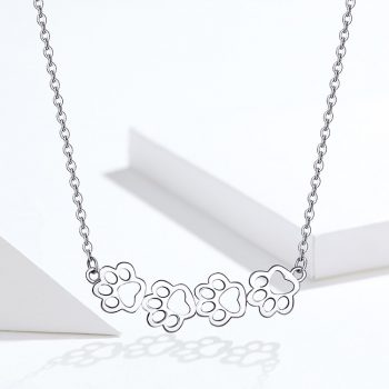 Victoria’s Vogue Dog and Cat Paw Silver Choker Necklace for Women 925 Sterling Silver Cat Pet Footprint Short Neckalces Accessories SCN346