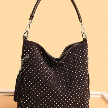 Victoria’s Vogue New Rhinestone Women Bucket Bag Large Scrub Leather Handbag for Ladies Big Size Tote Shoulder Bags Tassels Crossbody Bags