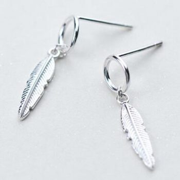 Victoria’s Vogue New Fashion Simple Sweet Leaf 925 Sterling Silver Jewelry Literary Popular Personality Round Women Stud Earrings