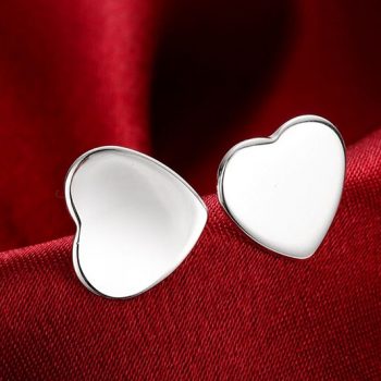 Victoria’s Vogue 925 Sterling Silver Smooth Heart Stud Earrings For Woman Wedding Engagement Fashion Party Charm Jewelry
