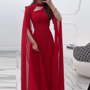 Victoria’s Vogue Women’s Clothing O-neck Long Sleeve Party Dress Elegant Solid Color Robe Dress Fashion High Waist Slim Evening Dress