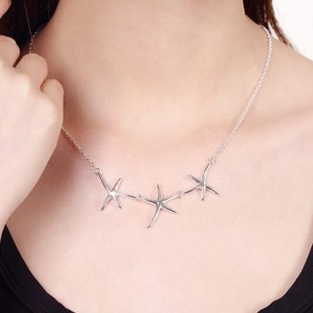 Victoria’s Vogue 925 Sterling Silver Three Star Chain Necklace For Women Charm Wedding Engagement Party Fashion Jewelry