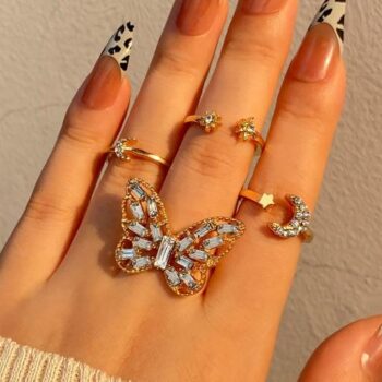 victoria’s vogue Vintage Crystal Butterfly Rings Set for Women Boho Gold Color Moon Star Finger Ring 2022 Trend Jewelry Party