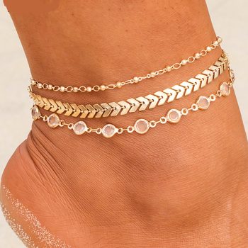 Victoria’s Vogue Crystal Sequins Anklet Set for Women Beach Foot Jewelry Vintage Statement Anklets Boho Style Jewelry Summer Party 3pcs /Set