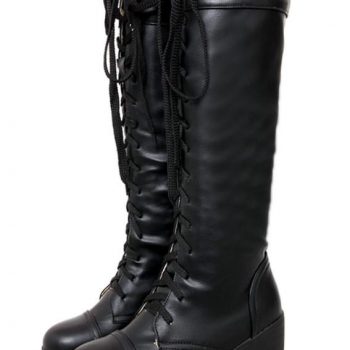 Victoria’s Vogue Large Size 43 Lace Up Knee High Boots Women Autumn Soft Leather Fashion White Square Heel Woman Shoes Winter Hot Sale