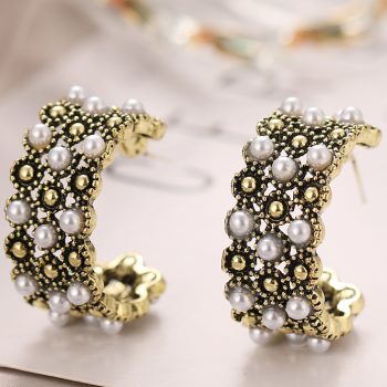 Victoria’s Vogue 2021 Vintage Crystal Pearl Metal Earrings Women’s Statement Heavy Metal Geometric Star Heart Earrings Fashion Jewelry Gifts