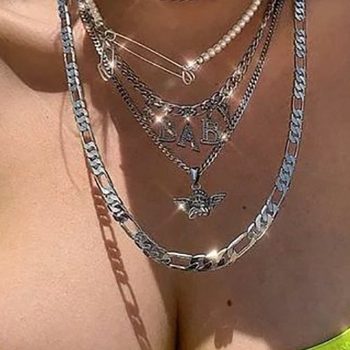 victoria’s vogue New Vintage Fashion Necklaces For Women Female Black Crystal Letter “BABY” Pendant Faux Pearl Paper Clip Necklace Jewelry Gift