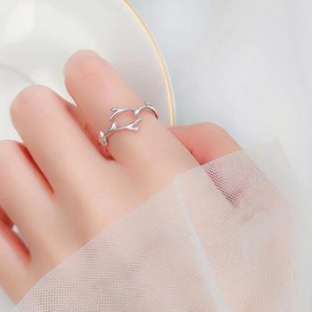 Victoria’s Vogue New Simple Fashion Antler 925 Sterling Silver Jewelry Personality Branch Popular Leaf Opening Rings