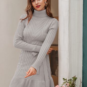 victoria’s vogue Casual Turtleneck women knitted dress Autumn winter long sleeve lace up dress elegant style female sweater dress 2020