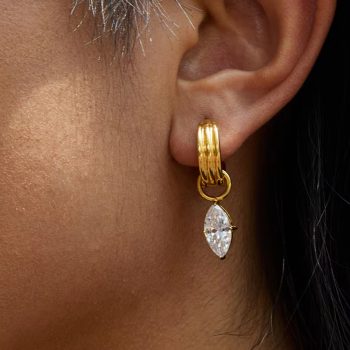 Victoria’s Vogue Trendy Designer 18K Gold Color Plated White Zircon Pendant Earrings Hypoallergenic Waterproof Stainless Steel Jewelry