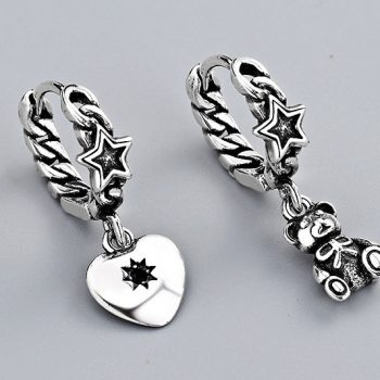 Victoria’s Vogue Vintage Little Bear Love Asymmetric Long Earrings 925 Sterling Silver Charms Earring Party Jewelry Gift for Women Couple