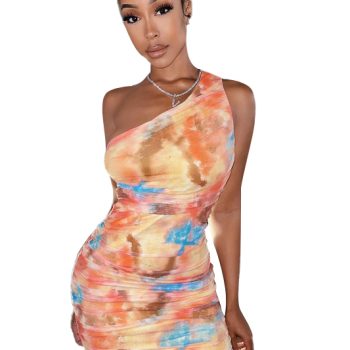 victoria’s vogue 2021 One-Shoulder Solid Sleeveless Colorful Sexy Gathered Long Dress Summer Women Fashion Streetwear Outfits Y2K