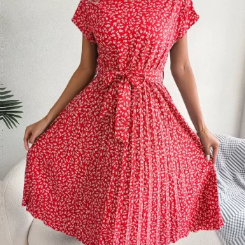 Victoria Vogue Fashion Floral Pleated A Line Long Dress Women Spring Summer Short Sleeve High Waist Chic Dress